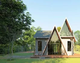 The farmhouses feature contemporary architecture blended with sustainable construction